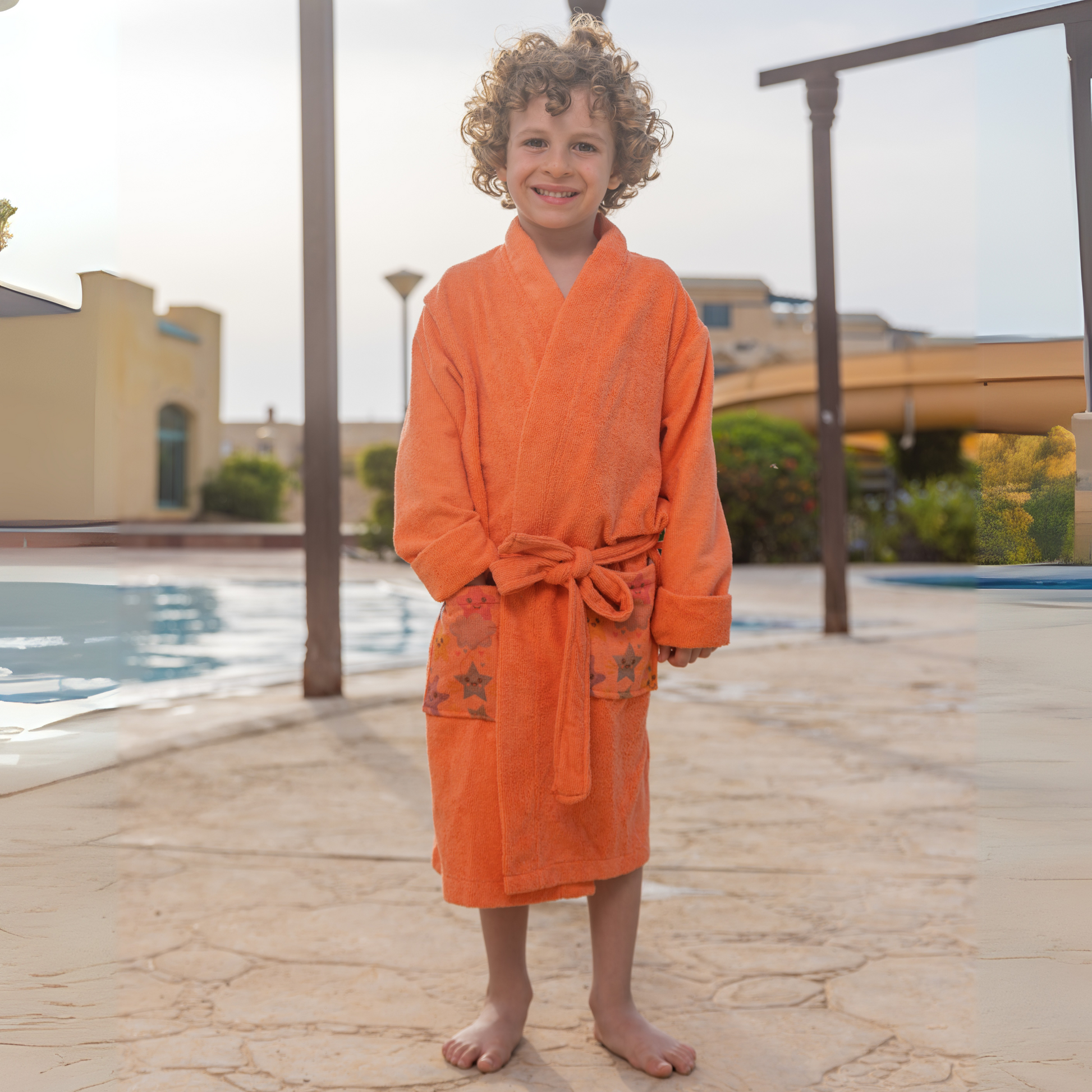 Equipped with convenient pockets and a matching belt, this bathrobe not only keeps them comfortable but also adds a touch of practicality. The pockets offer a handy space for them to carry their favorite toys or treasures, while the belt allows for an adjustable fit.