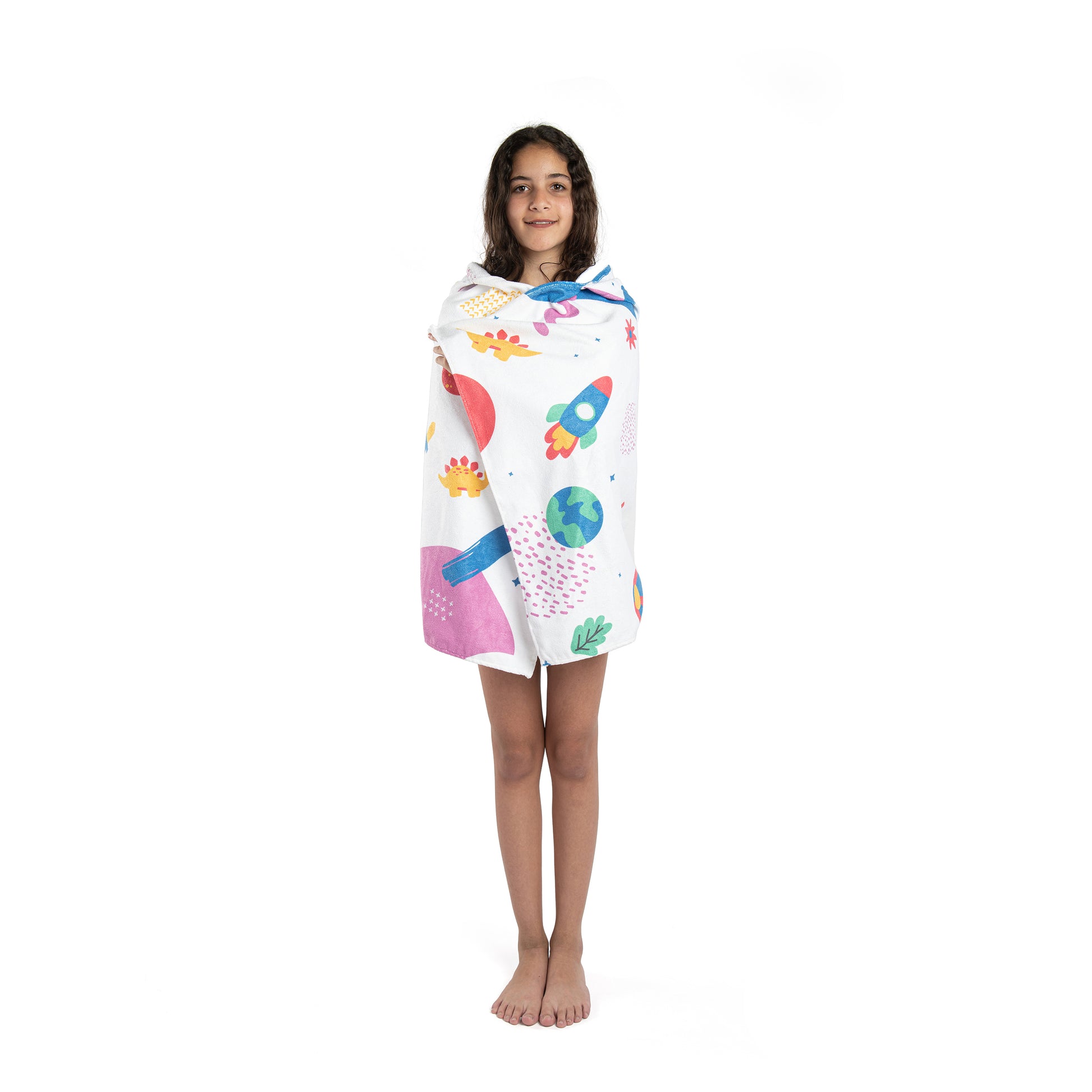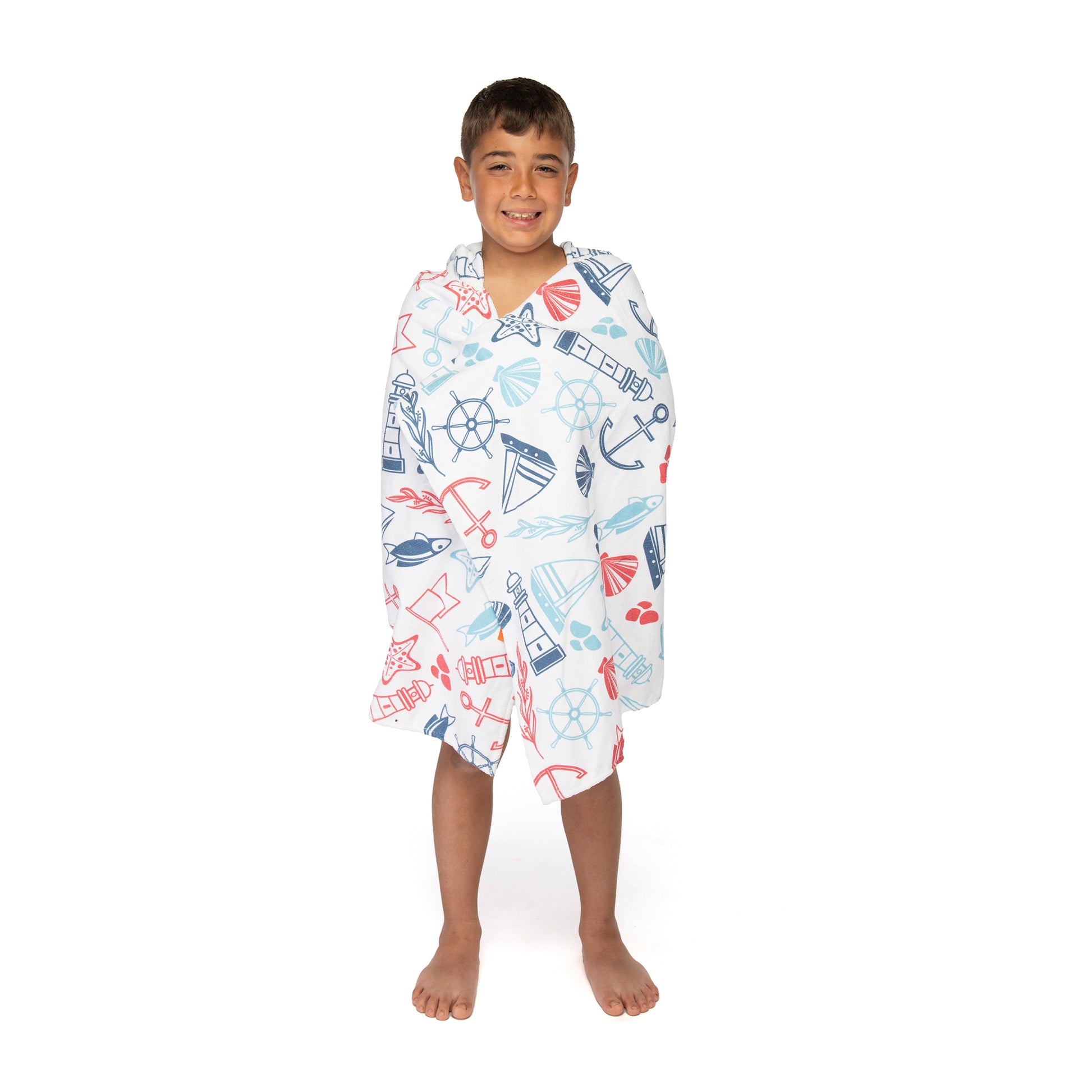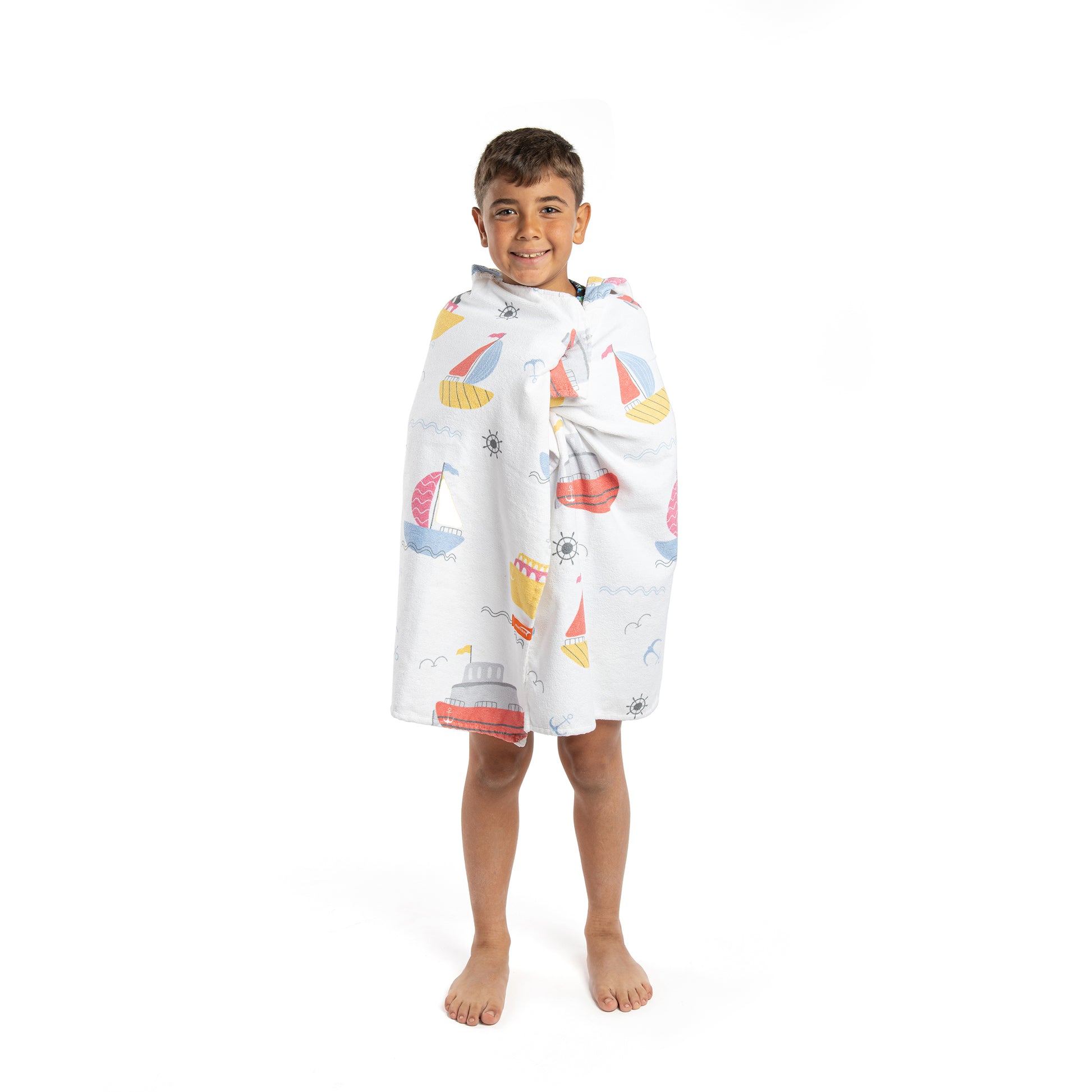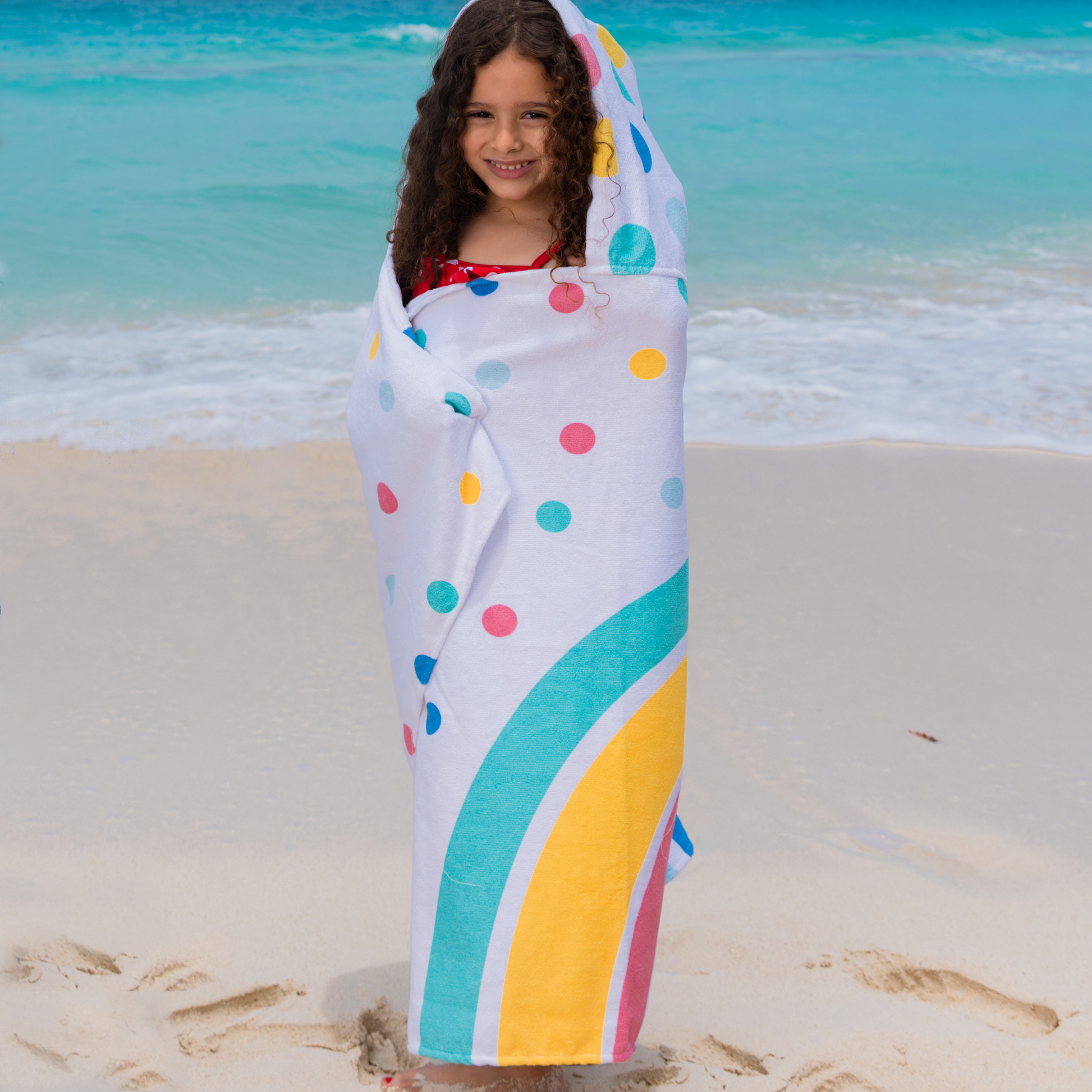 Introducing our Hooded Microfiber Beach Towel for Kids, the perfect accessory for a fun-filled day at the beach or poolside! This ultra-soft and absorbent towel is specially designed to keep your little ones warm, cozy, and stylish. As well as a hood that is designed perfectly for keeping their head and hair protected from the sun and wind.